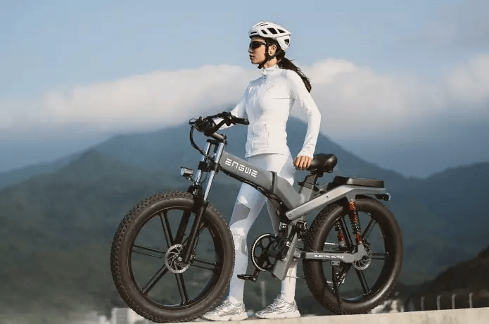 FAT TIRES SMOOTH OUT BUMPY PAVEMENT,20 × 4.0 INCH FAT TIRES With wider tire surface, ENGWE e-bike enables you to ride smoothly on rugged road sand tackle steep hills.